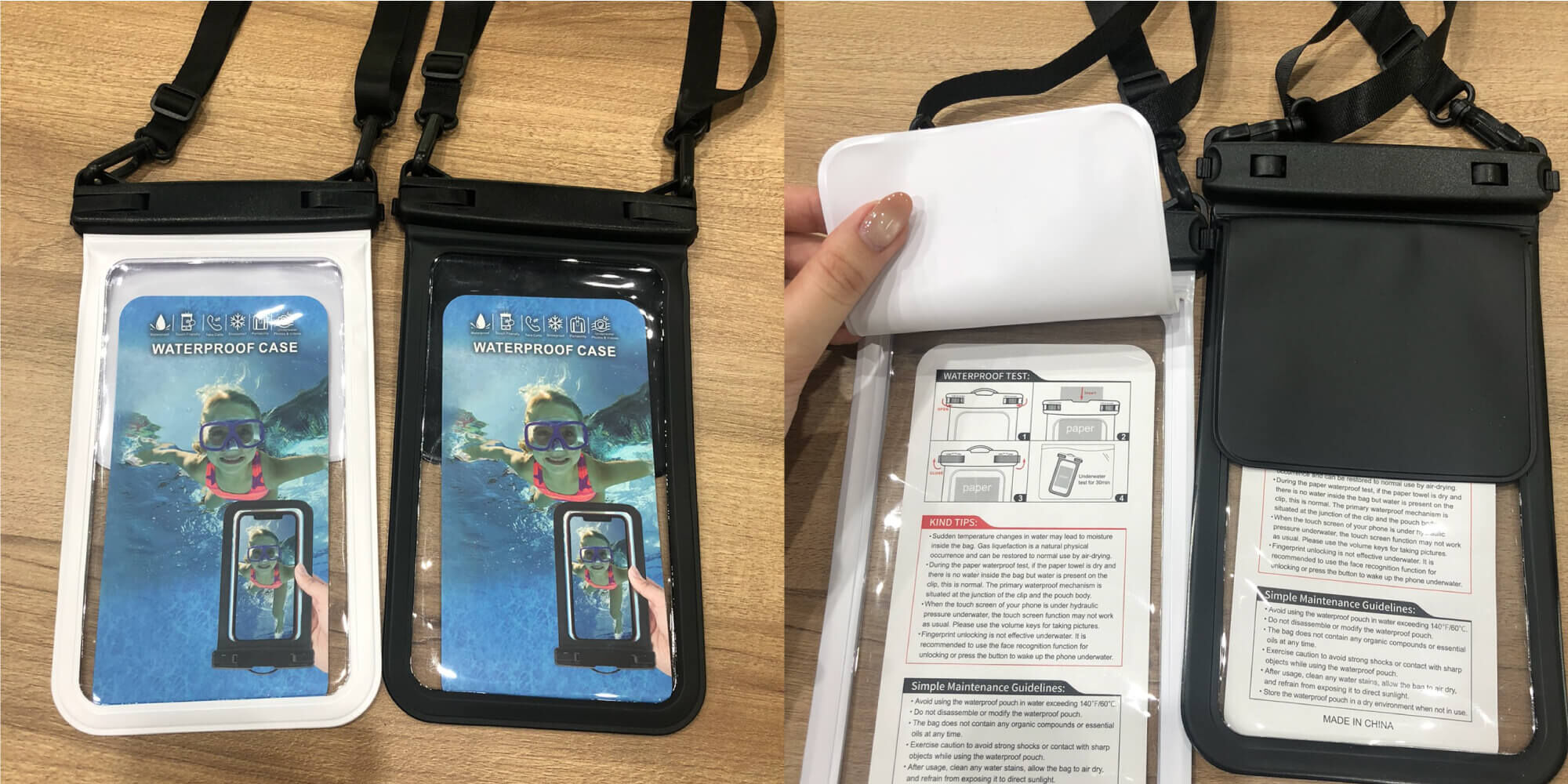 IPX8防水等級、30M防水,高清透明袋身,不妨礙手機鏡頭拍照功能。