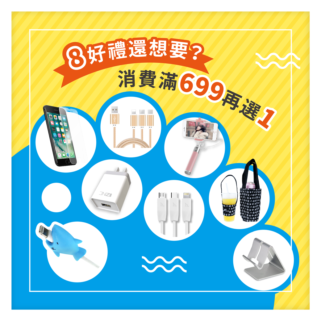 開幕活動期間單筆消費滿699元,即可再享8好禮再選1的優惠!